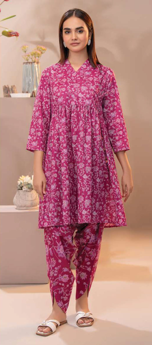 Fresh Sky Blue Cambric 2-Piece Suit / Angrakha Style Printed Kurti